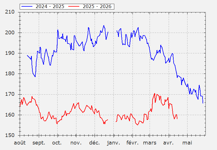 Grafieken van de indicatieve prijzen